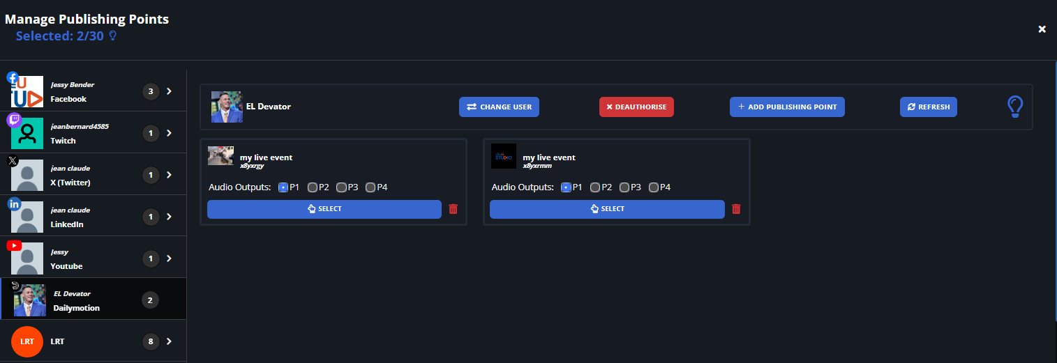 Please note that in order to add a Dailymotion publishing point you must have at least one Live or video on your account.