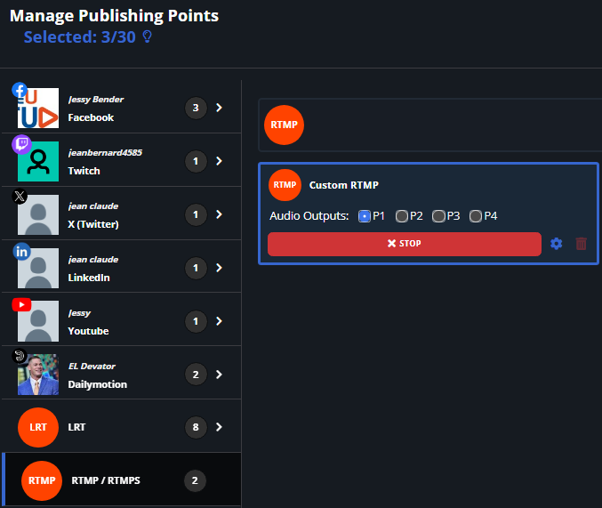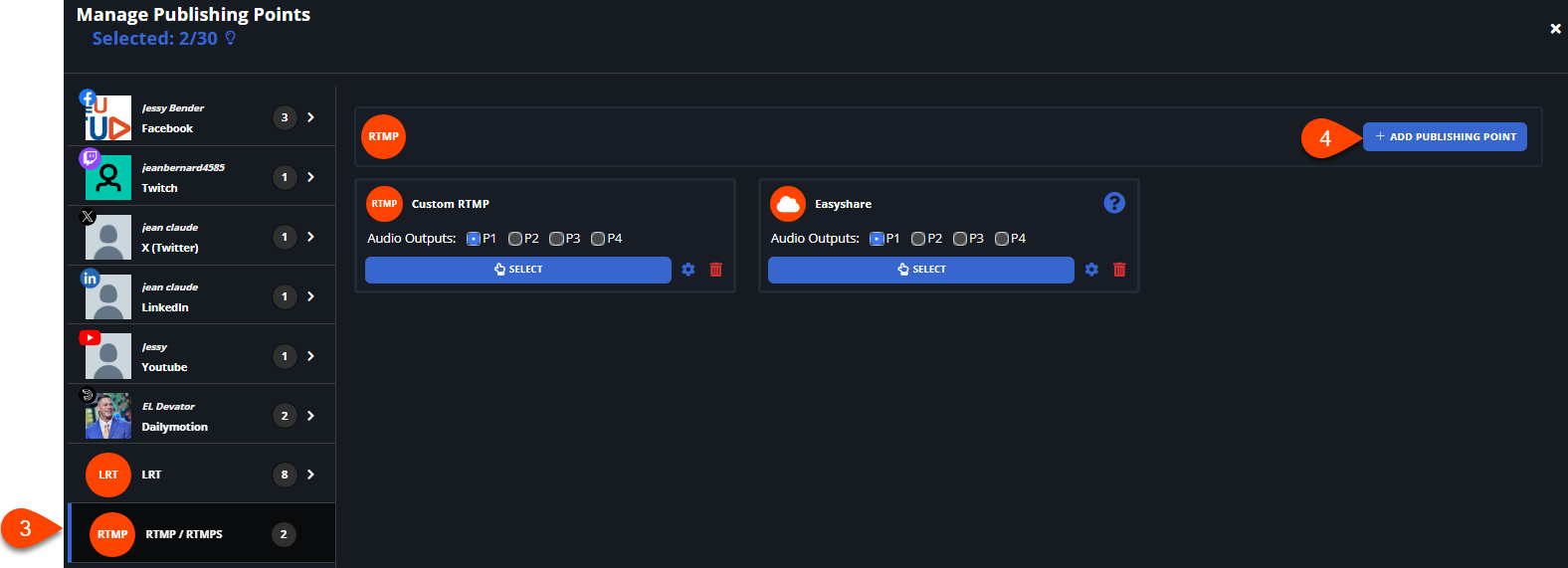 - In the RTMP/RTMPS tab -> Add a publishing point -> select Custom RTMP/RTMPS