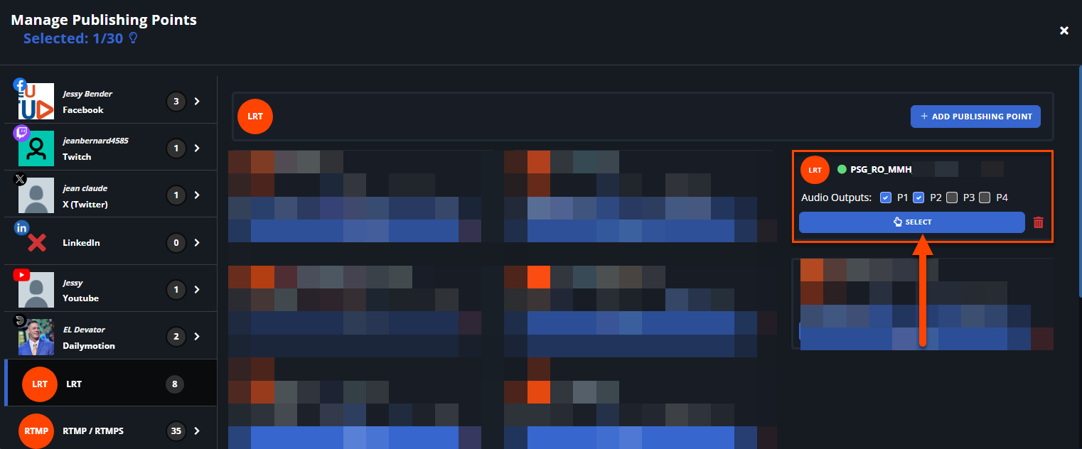 Please note that you can publish in LRT to your own channel (physical or cloud) OR to one of the LiveU Channel (mmh) included in your Studio subscription.