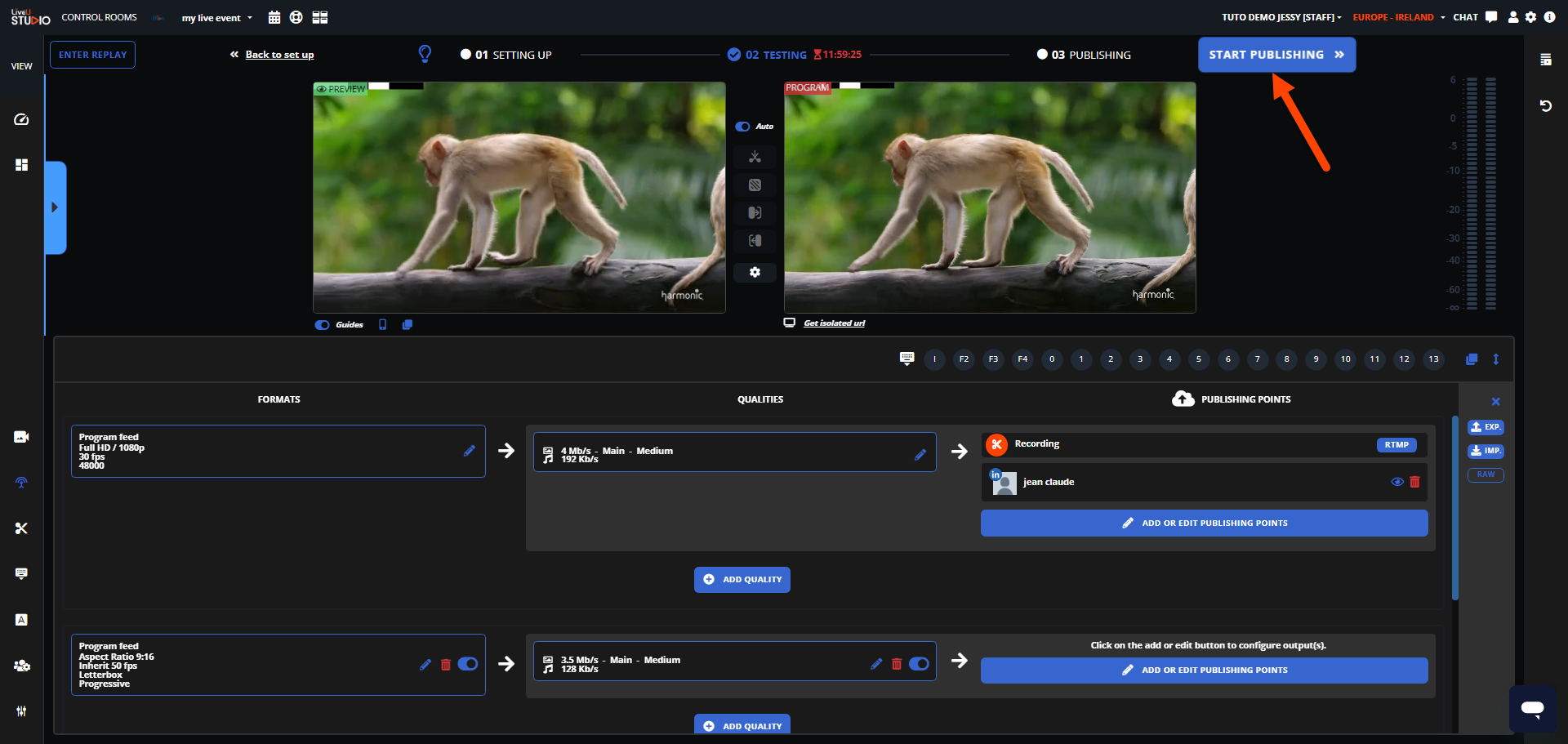 - Ask the producer to share with your the LinkedIn Event RTMP