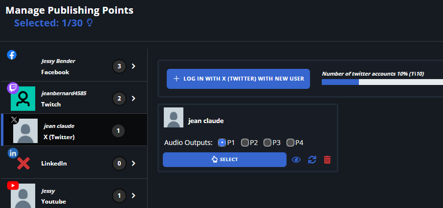 - Add my first Twitter account in LiveU Studio with the "Log in with Twitter" button (3).