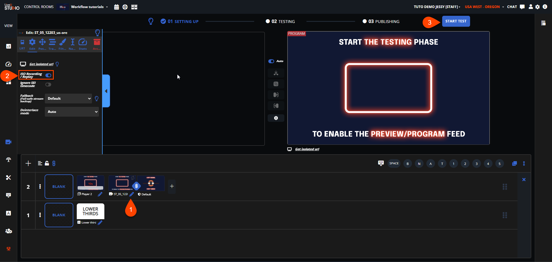 リプレイタブに表示したいすべての入力映像についてISO Recording / Replayを有効にします。
